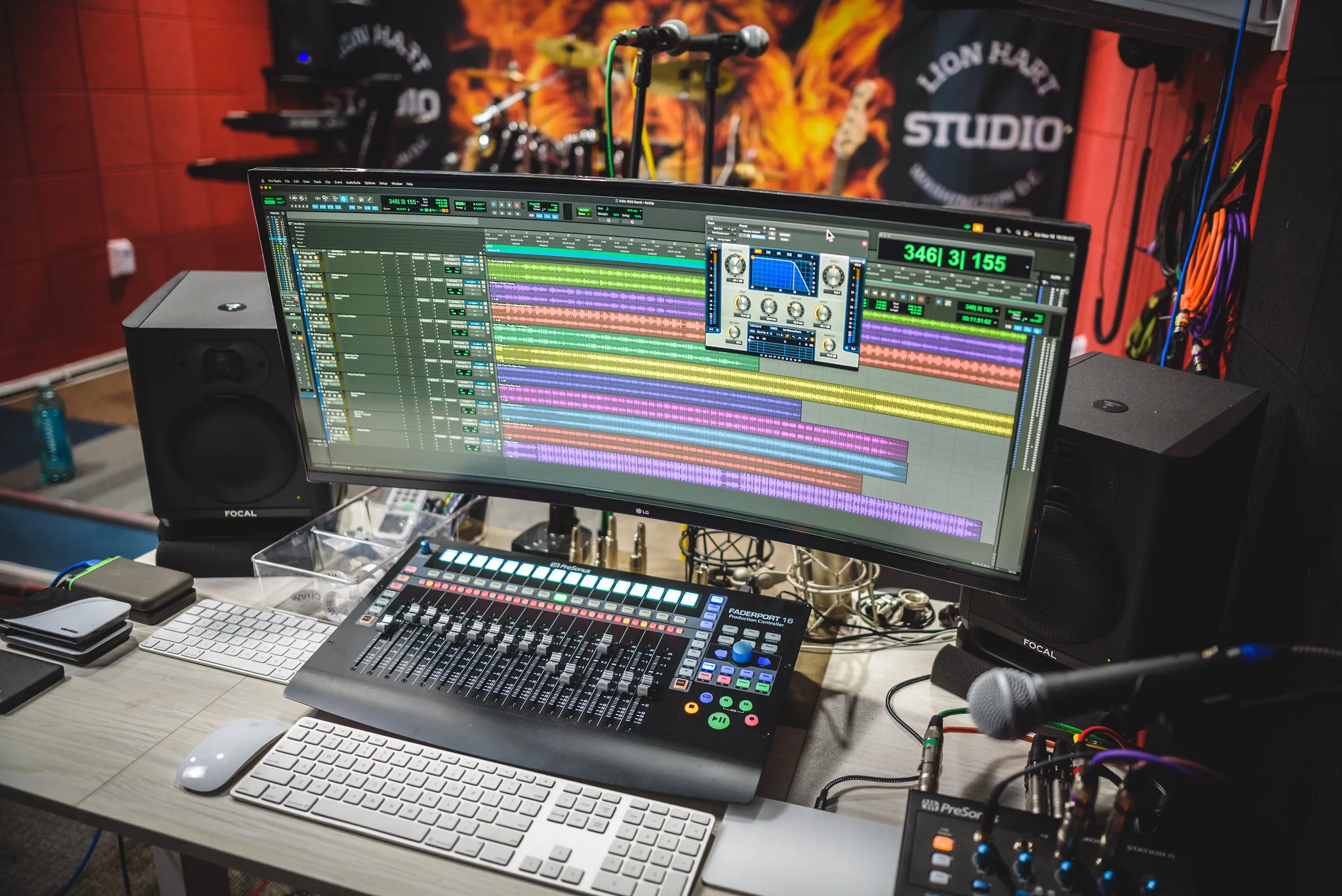 Whether we’re tracking through the Scarlett Preamps, catching that warm vocal on the WA47jr or the Lewitt LCT 440, or getting the perfect punch out of the Yamaha drums with the sE Electronics mics, it’s all about the quality of the sound. Running ProTools and Logic through PreSonus Quantum interfaces, we don’t move a fader unless we can hear the truth on the Focal monitors. Our team is committed to making sure that every artist and band that walks through the doors at Lion Hart Studio doesn’t just have a “good” experience, but has the “greatest” experience.